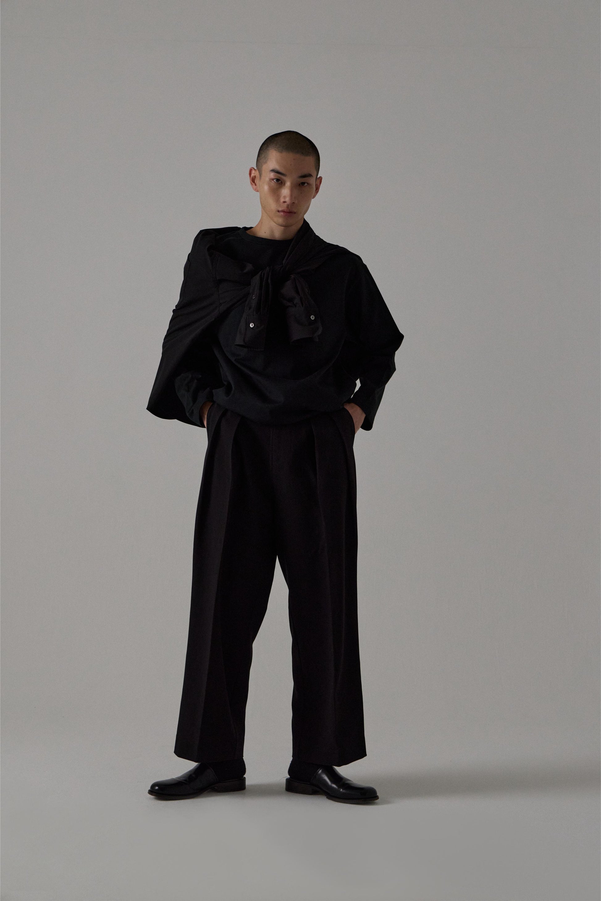 肩の落ち感にこだわったゆったりとしたサイズバランス。撚りの方向性が異なる糸を、表と裏それぞれに使い分けて編み立てたプレーティングを採用。表面の目面が美しく、通常の天竺に比べ洗濯後の目曲がりも軽減されています。