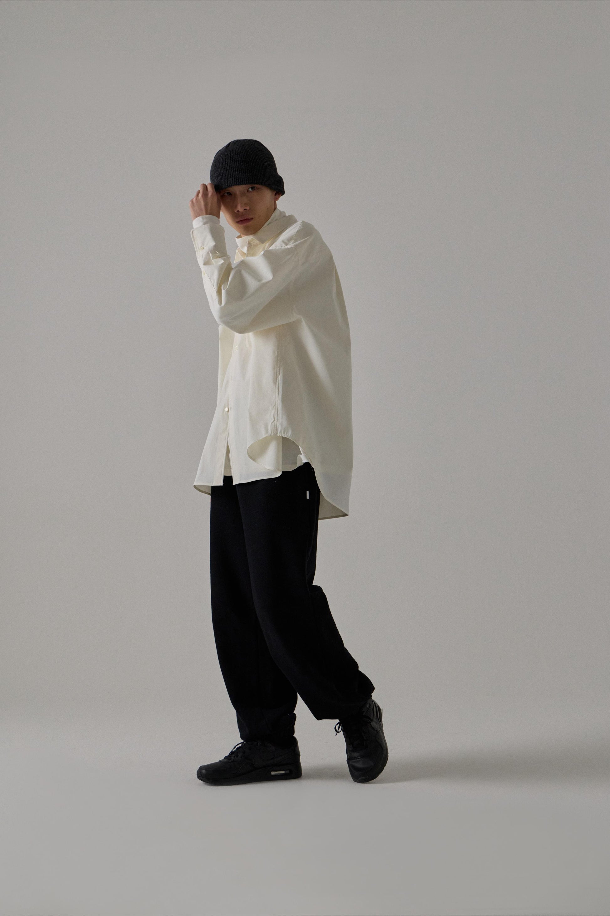腰周りは程よくゆとりを持たせ、リラックス感のあるサイズ感に。ウエスト周りと裾はゴム絞り仕様。17OZ OVERSIZED SWEAT & 17OZ OVERSIZED HOODIEとセットアップでお召し頂けます。