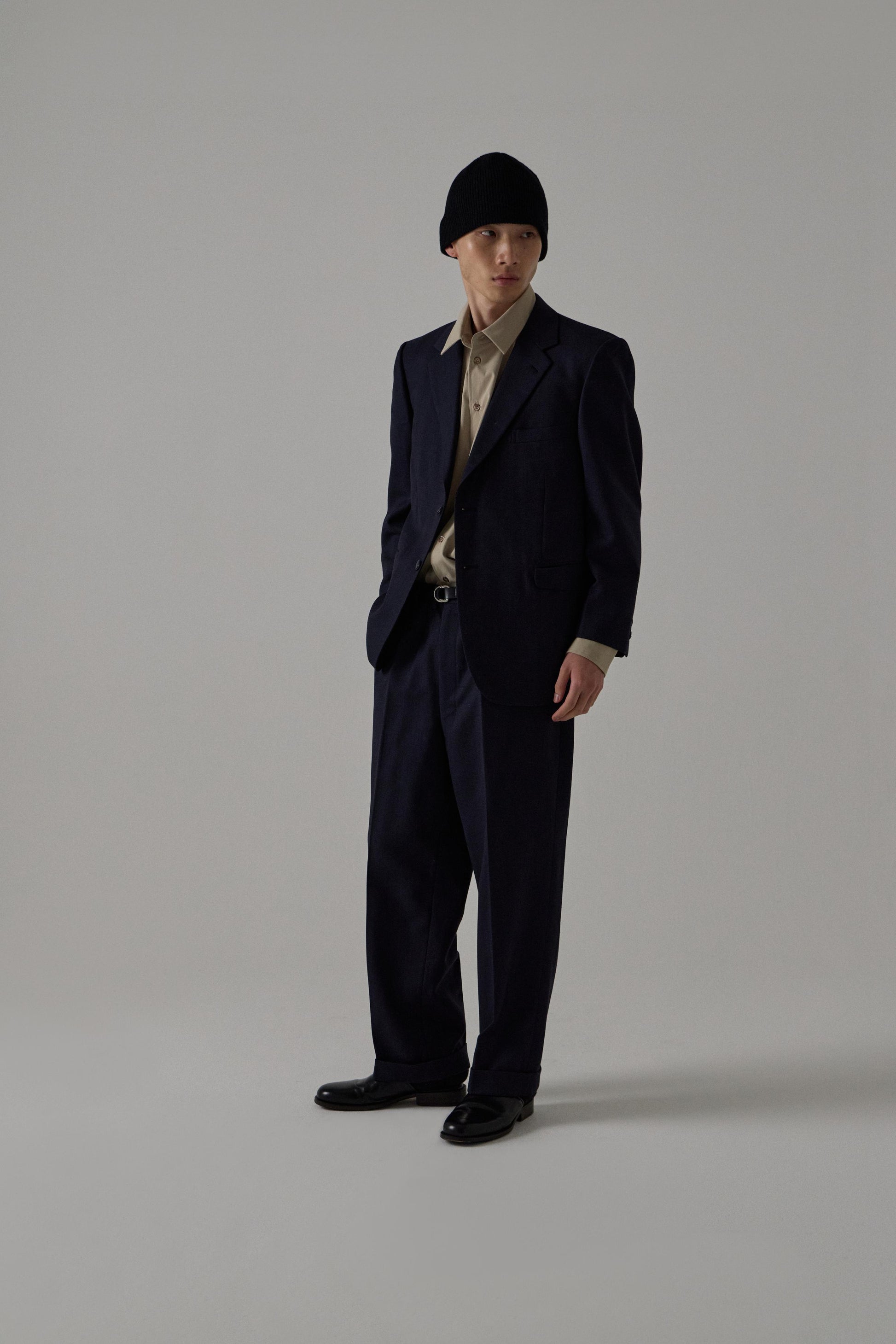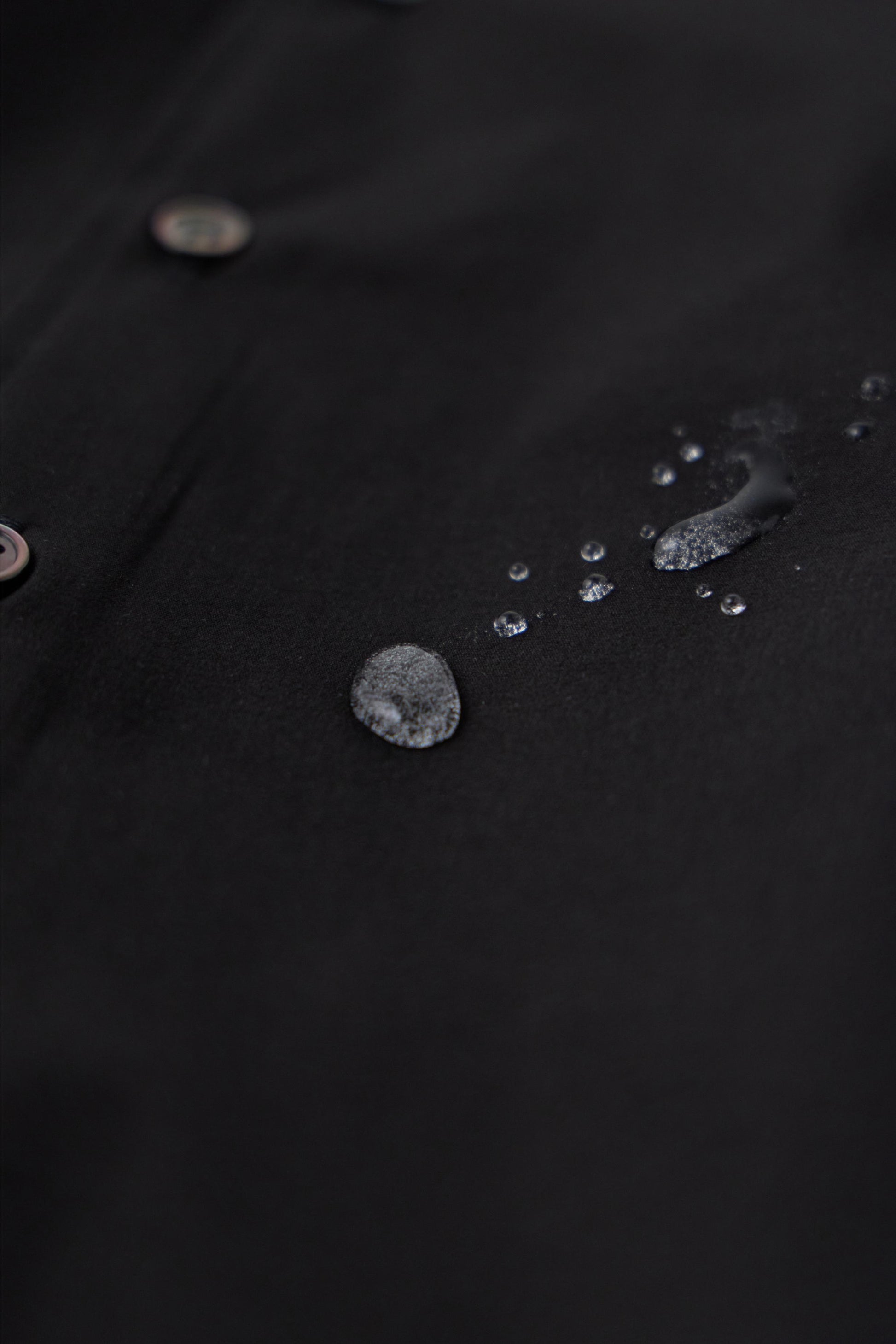 シワになりにくい実用的な素材を使用し、程よい反発感としなやかなストレッチ性が特徴。ワッシャー加工によるリラックス感と撥水機能を備え、快適な着用感を実現。